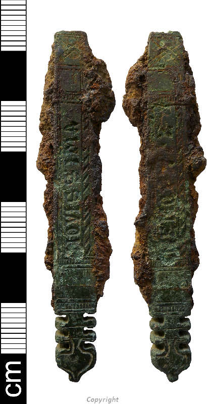 | <S10> | Illustration: Gibbons, J.. 2005. Drawing of a Late Saxon copper alloy strap-end.. Film. 2:1. |