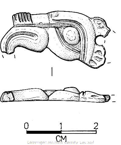 | --- | Photograph: 1995. LCS 23-24, Early Saxon girdle hanger.. |