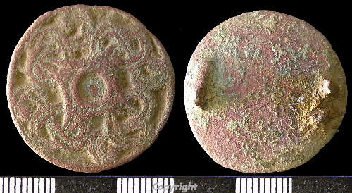 Bronze decorated buckle plate, 13th century. See (S4) for similar example.