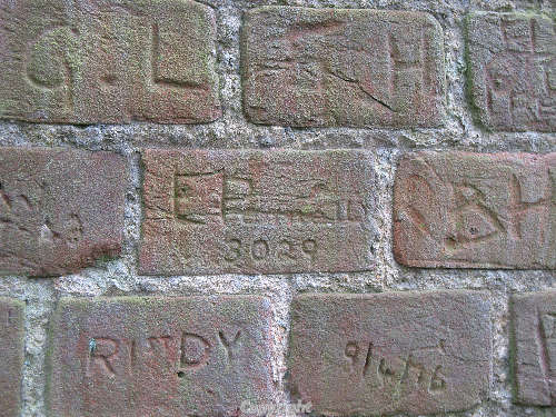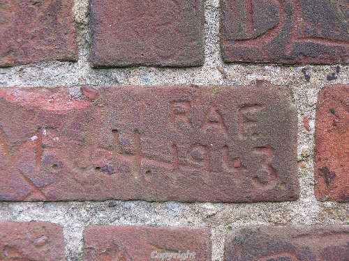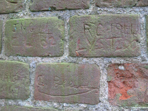 Almost every brick within reach externally and many internally bear graffiti, including several dating to the 1940s when the house (NHER 5115) was requisitioned and served as the Officers Mess for nearby RAF Oulton (NHER 7364).