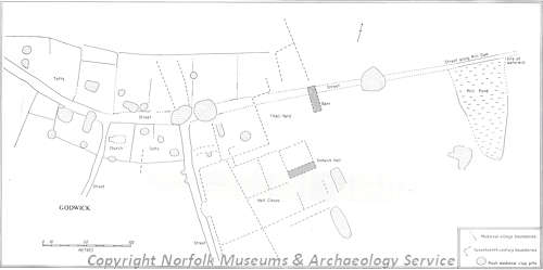 <S1> | Article in Monograph: Wade-Martins, P., Fenner, G. and Knight, J. 1982. Some Deserted Village Sites in Norfolk: IV. Godwick. Trowse, Horning, Deserted Medieval Villages. East Anglian Arch. No 14. pp 59-67. p 59. |
